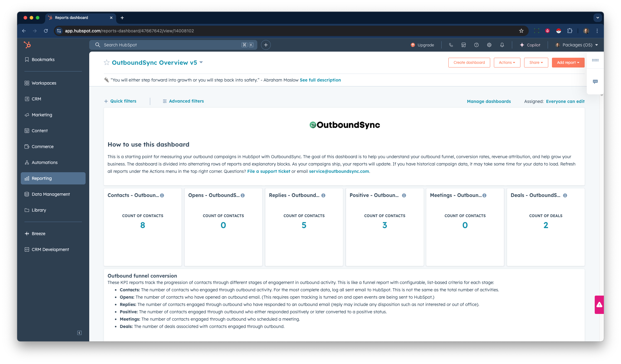 You get a custom onboarding plan and help from our team. Can't wait? See every step required to install OutboundSync as a HubSpot App in right now.