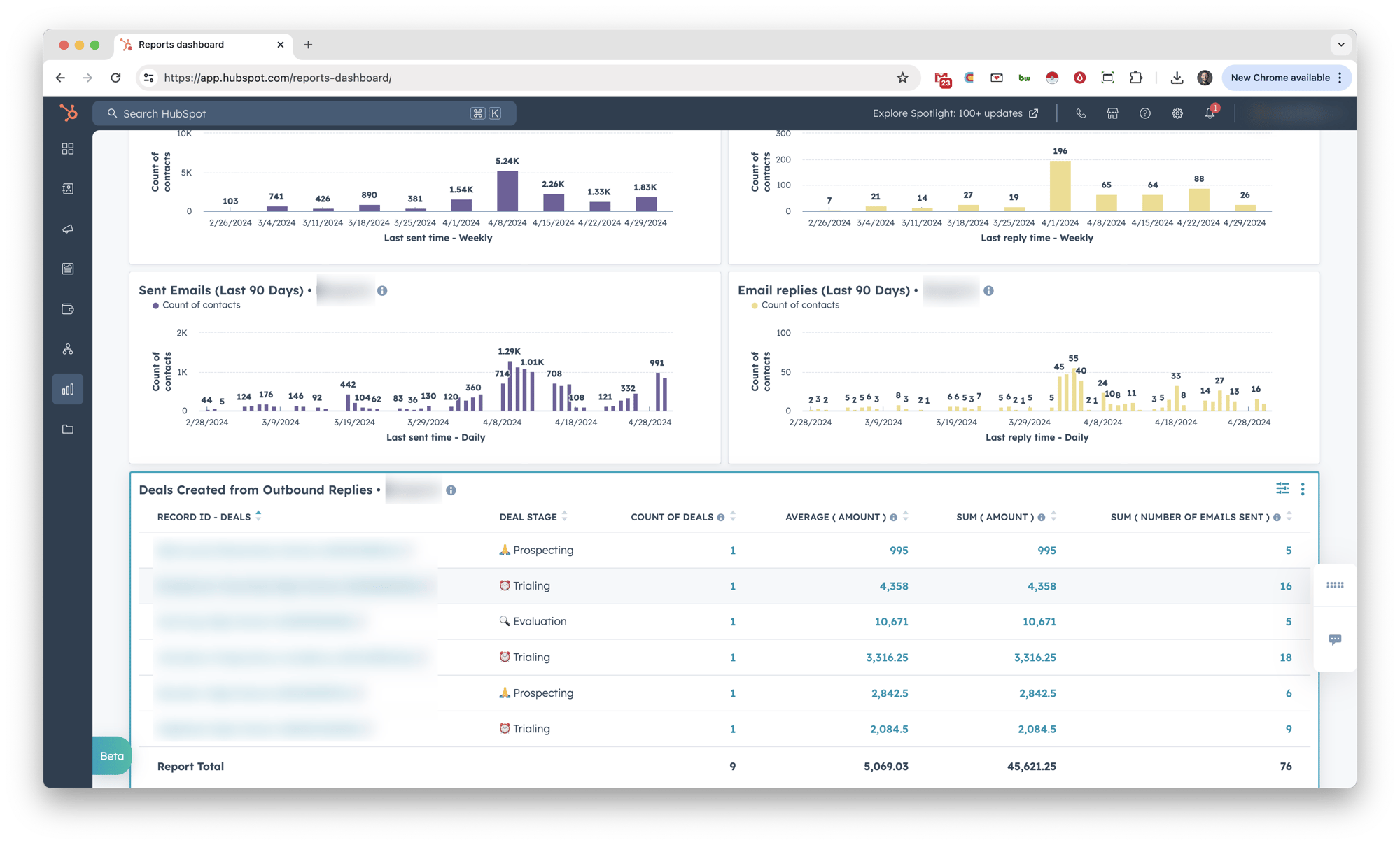 Create your own reports and dashboards in HubSpot to monitor your outbound results.